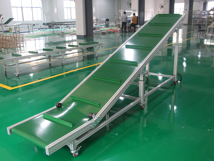 爬坡輸送機的輸送傾角大,最大可達90°,是大傾角輸送和垂直提升的理想設備。因此可以節(jié)約占地面積,節(jié)省設備投資和土建費用,取得良好的綜合經(jīng)濟效益。